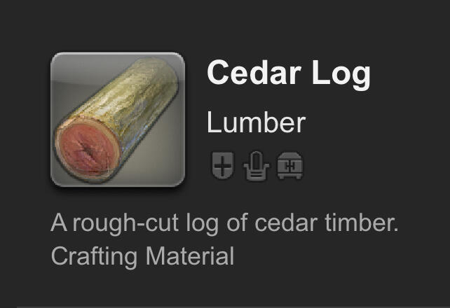 Harvested from the oldest, most resilient trees near Falcon’s Nest in the Western Highlands, cedar makes for excellent casks, window frames and any woodwork good that must withstand the harshest elements.